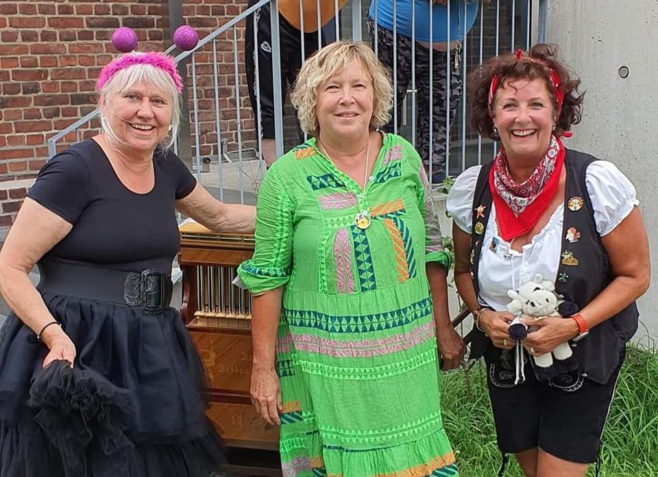 Die designierte Buschdorfer Prinzessin, Doris II. (Schürmann), lockte mit ihrer Drehorgel viele Besucher an. Es herrschte eine tolle Stimmung bei sommerlichen Temperaturen. Auch in diesem Jahr konnte der Verein wieder einige Größen des Karnevals begrüßen, die selbstverständlich ohne Gage auftraten. Den Anfang machte die Kuhstall-Liesel (Thilly Meester), eine tolle Rednerin aus Neuss, die mit ihrem Vortrag den Hof des Prälat-Schleich-Hauses zum Wackeln brachte. Ihr folgte Anna Molitor von der Tanzschule Lepehne-Herbst aus Bonn. Sie animierte die Anwesenden zum Mitmachtanzen. Der Reihentanz feierte sein gelungenes Comeback. Der Höhepunkt des Nachmittags war die Brass- und Partyband Knallblech aus Bonn. Die durften ohne Zugabe den Hof nicht verlassen. Es herrschte eine ausgelassene Stimmung bei allen Teilnehmern. Die Moderation von „E‘ Stönnche Sommerfreud“ übernahm Gaby Uhler, Vereinsmitglied von Knatsch Verdötscht e.V.