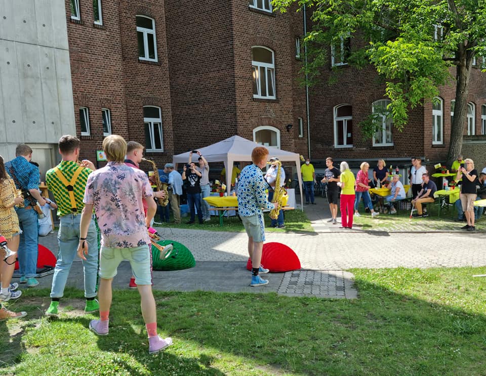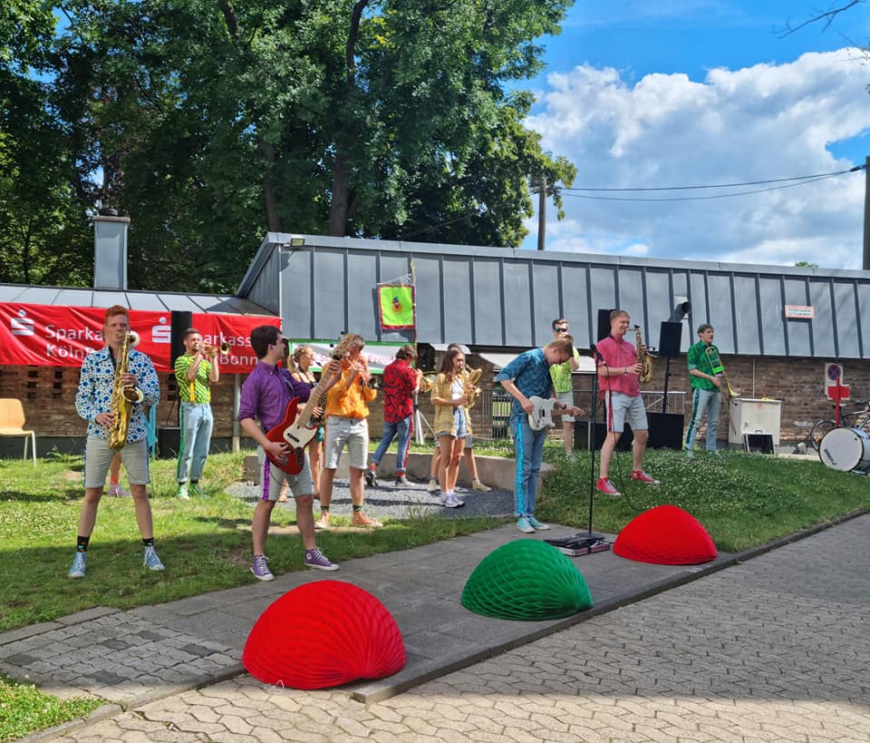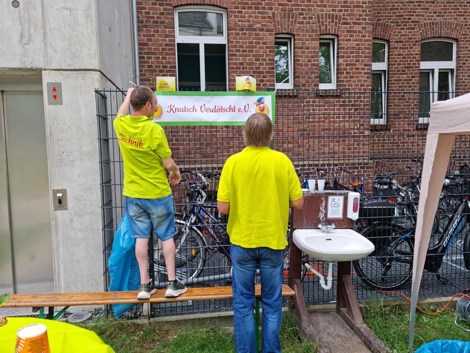 Da es seit zwei Jahren Corona bedingt dem Bonner Karnevalsverein Knatsch Verdötscht e.V., in Zusammenarbeit mit der Caritas Bonn, nicht möglich war, seine Benefizveranstaltung für Wohnungslose und Bedürftige „E‘ Stönnche Freud‘ abzuhalten, entschied sich der Verein, das Ganze in den Sommer zu verlegen, und zwar unter dem Motto „E‘ Stönnche Sommerfreud“. Freude wird unabhängig von der Jahreszeit gebraucht. So kamen auch viele am Samstag, dem 25. Juni 2022, ins Prälat-Schleich-Haus der Caritas, um draußen mit zu feiern. Unserer Einladung sind auch Jochen Reeh-Schall, Bezirksbürgermeister der Stadt Bonn, Dr. Nico Janicke, Stellvertretender Fraktionsvorsitzender der SPD Fraktion Bonn, sowie der Vorsitzende des Ortsfestausschusses Buschdorf e.V., Manfred Orth, gefolgt.